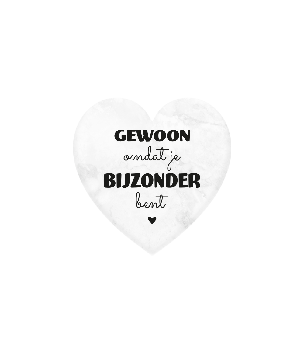 Haal een stukje liefde binnen met onze marmeren hartjes met de tekst "Bijzonder". Dit stijlvolle en tijdloze geschenkartikel is perfect voor elke gelegenheid! Het hartje is gemaakt van marmer, wat zorgt voor een luxe uitstraling en het tevens een duurzaam artikel maakt.