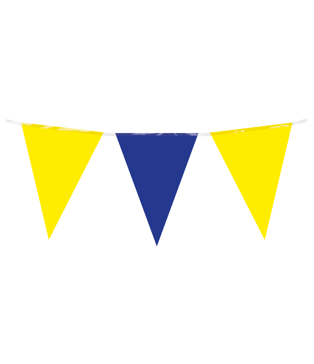 Met de party flags PE - navy blue yellow uit de Basic collectie van Paper Dreams haal je een kwalitatieve blauw gele vlaggenlijn in huis voor een scherpe prijs. De vlaggenlijn is 10 meter lang.De vlaggetjes zijn gemaakt van Polyetheen (PE) en zijn gemakkelijk op te hangen