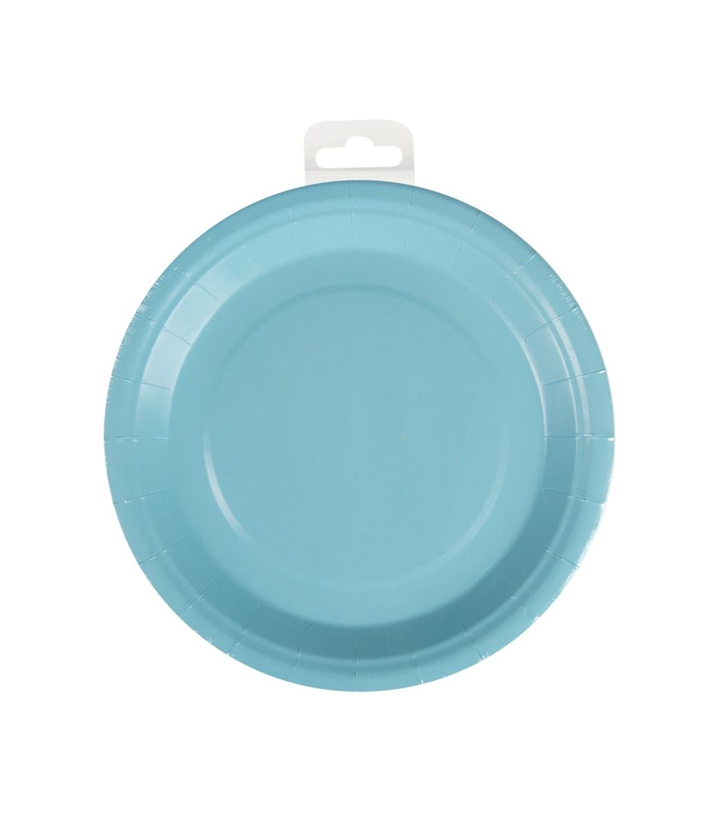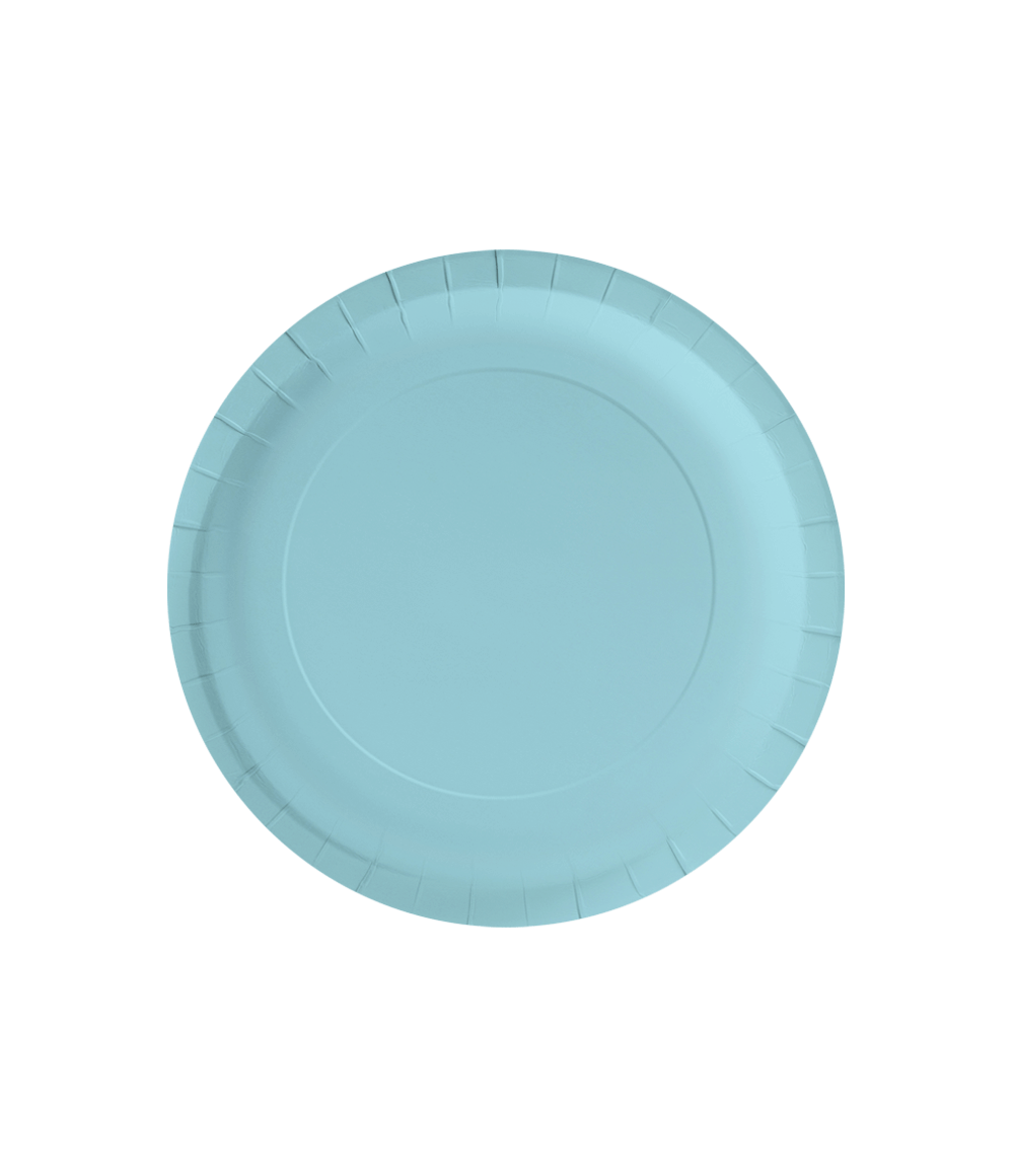 De Plates - Pastel blue zijn de perfecte decoratie artikelen op een feestje waar de kleur pastel blauw het thema is. Deze bordjes zijn 23 x 23cm, zitten per 8 verpakt en passen perfect bij de overige pastel blauwe artikelen zoals de confetti, servetten, bekertjes, tafelkleden, snackboxes en vlaggenlijn. Presenteer deze items bij elkaar, zodat het voor de klant direct duidelijk is waar deze collectie uit bestaat. Deze bordjes zijn van papier, wat het tot een milieuvriendelijke keuze maakt!