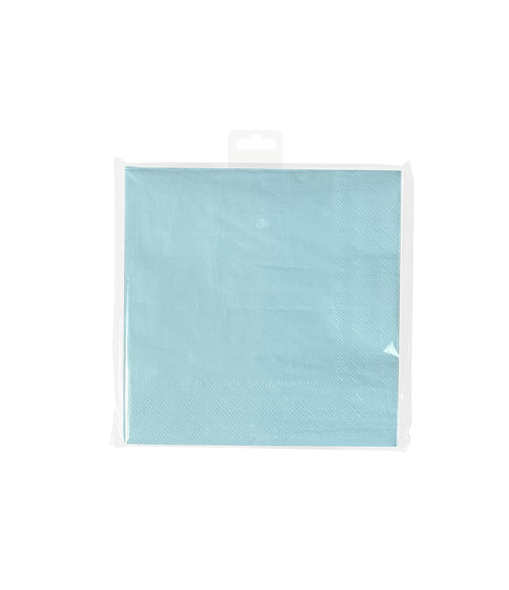 De Napkins - Pastel blue zijn de perfecte decoratie artikelen op een feestje waar de kleur pastel blauw het thema is. Deze servetten zijn 16,5 x 16,5cm, zitten per 8 verpakt en passen perfect bij de overige pastel blauwe artikelen zoals de confetti, bordjes, bekertjes, tafelkleden, snackboxes en vlaggenlijn. Presenteer deze items bij elkaar, zodat het voor de klant direct duidelijk is waar deze collectie uit bestaat. Deze servetten zijn van papier, wat het tot een milieuvriendelijke keuze maakt!
