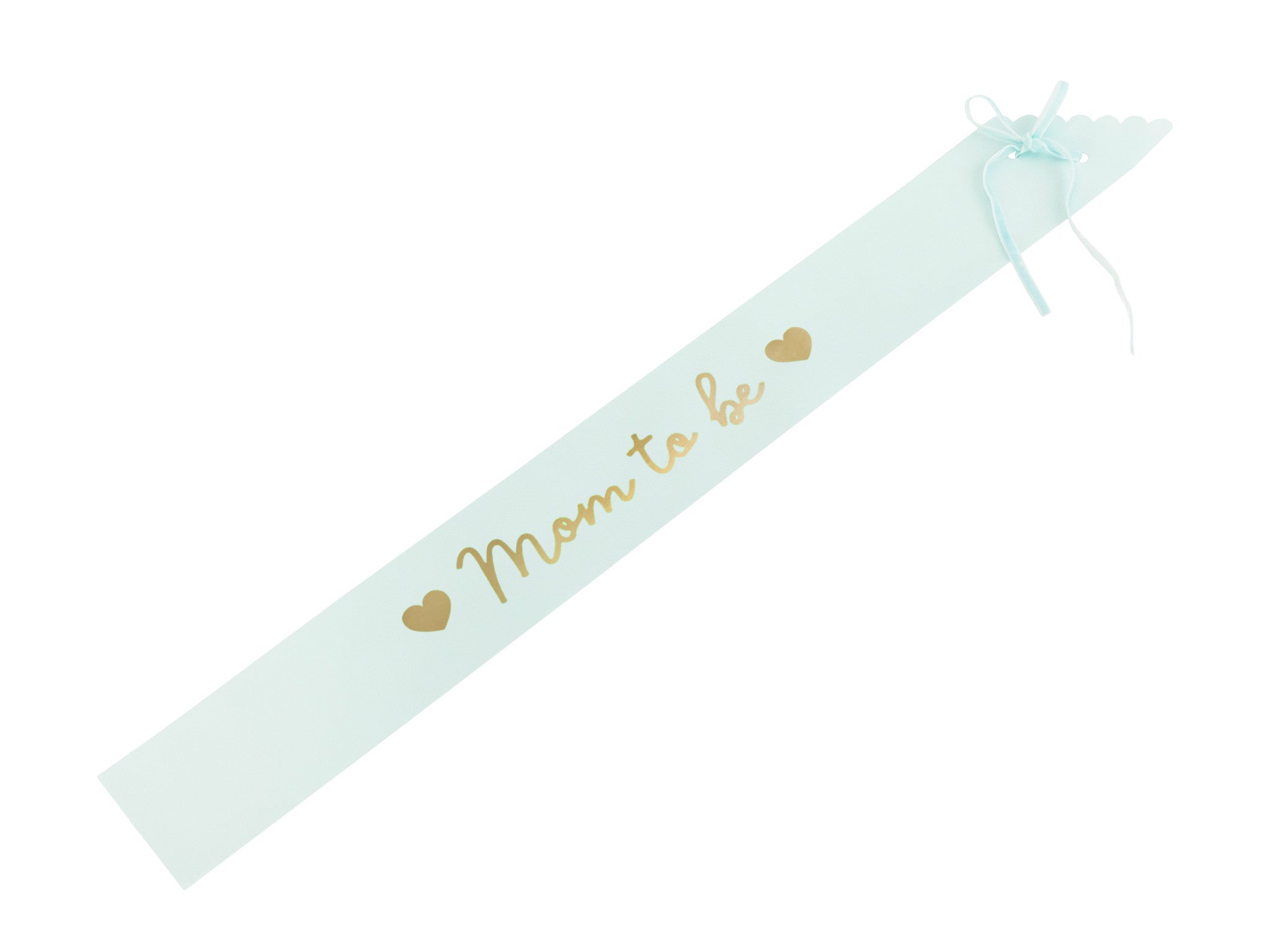 Sjerp van licht tiffany blauw papier met gouden opschrift "Mom to be", breedte ca. 9,5 cm, lengte ca. 75 cm.