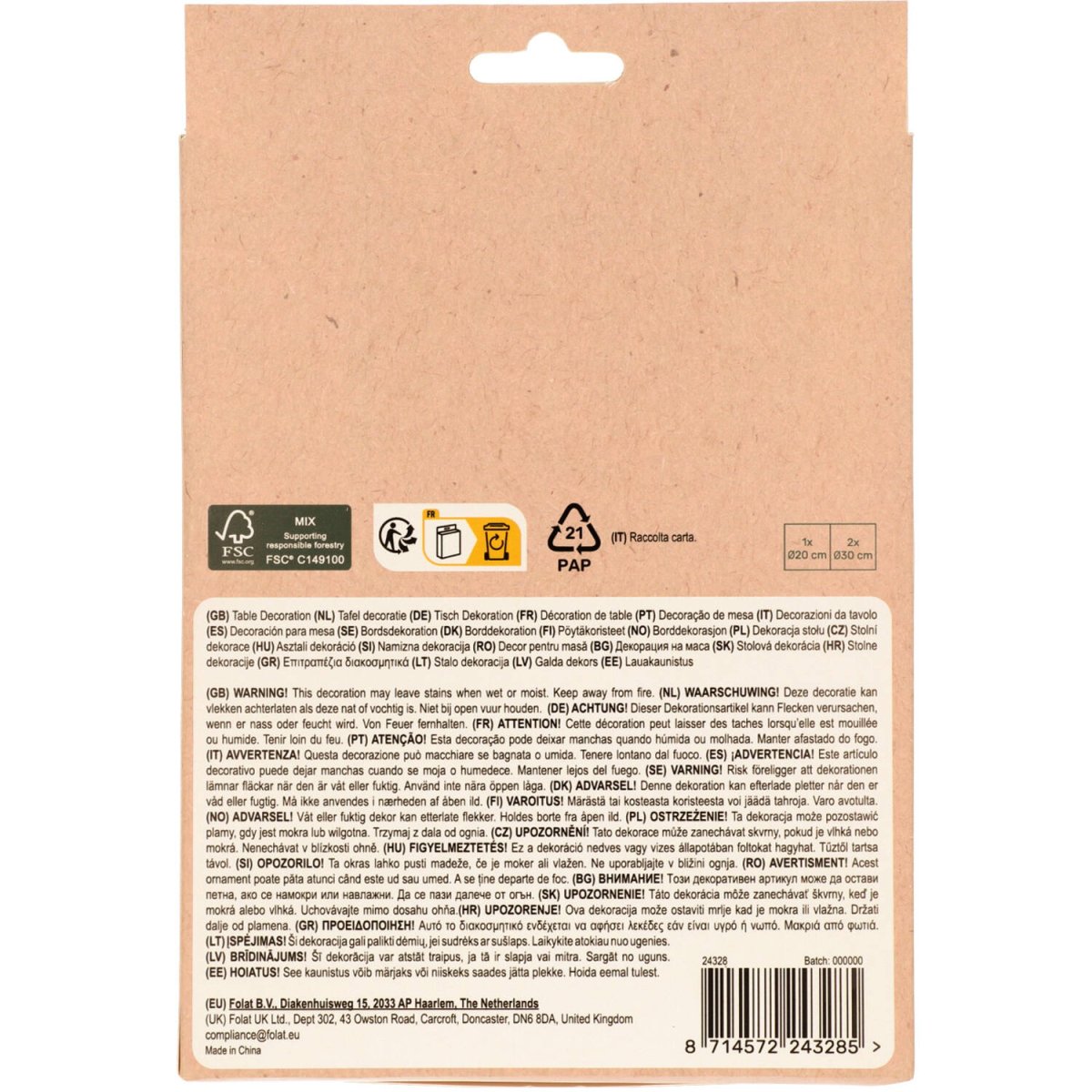 Het feest zit in de zachte details! Tafeldecoratie - Flower Set - Playful Powder - 3 stuks. Inhoud: 3 decoratiebloemen. Bijvoorbeeld te gebruiken tijdens de volgende feestgelegenheid/feestgelegenheden: Verjaardag, Themafeest, Babyshower. Prachtige decoratiebloemen in om een lichte feestsfeer tot in de smaakvolste details te decoreren. Twee bloemen hebben een diameter van 30 cm: zachtgeel met een witte kern, zachtroze met een zachtgele kern. Eén bloem heeft een diameter van 20 cm:zit met een zachtroze kern. De bloemen zijn gemaakt van FSC crêpepapier. Ze zijn ingevouwen verpakt en kunnen gemakkelijk uitgevouwen worden. Dit artikel is gemaakt van FSC papier.