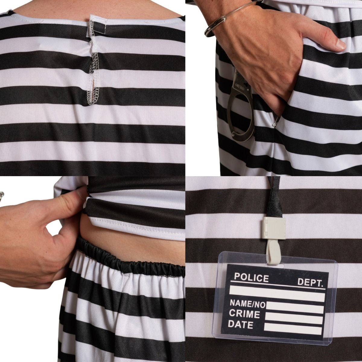 Ga voor de klassieke gevangenislook met dit zwart-wit gestreepte heren kostuum. Perfect voor carnaval, themafeesten, foute party’s of vrijgezellenavonden.