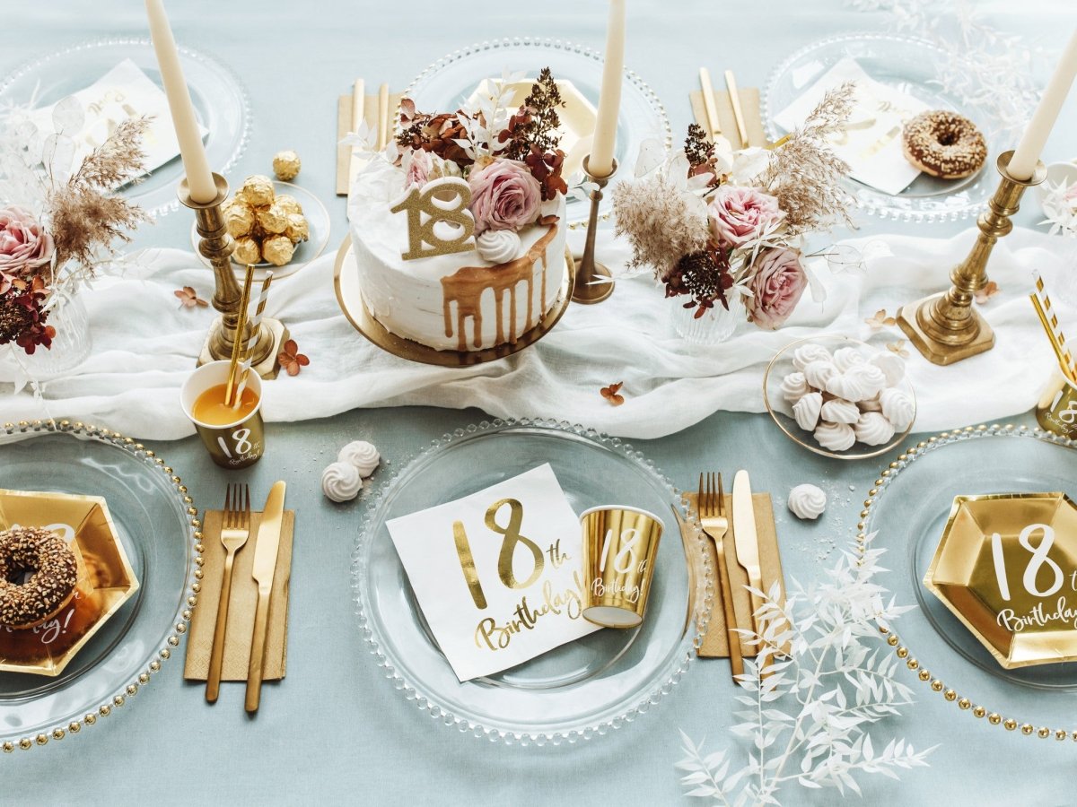 Inhoud: Papieren borden in goud metallic kleur met witte opschrift 18th Birthday !, afm. 20 x 17 cm. (1 PKT / 6 st.)