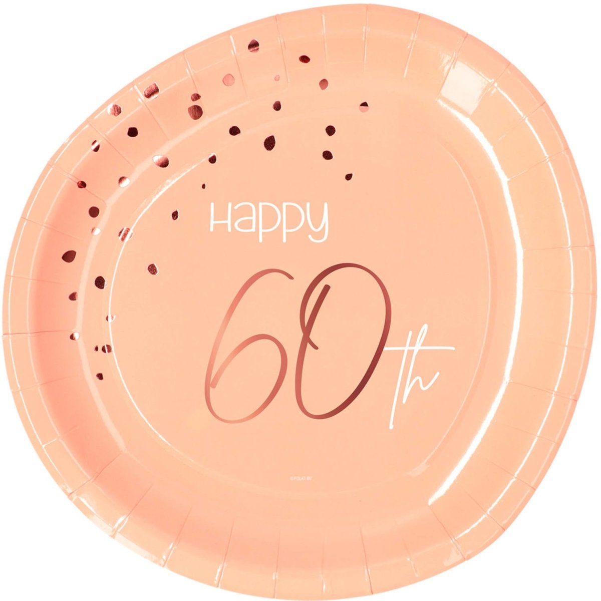 Borden Elegant Lush Blush 60 Jaar 23cm - 8 stuks. Inhoud: 8 borden van 23cm. Kleur: Roze. Bijvoorbeeld te gebruiken tijdens de volgende feestgelegenheid/feestgelegenheden: Verjaardag, Jubileum. Een bord heeft een diameter van 23 cm. Het artikel is gemaakt van papier.