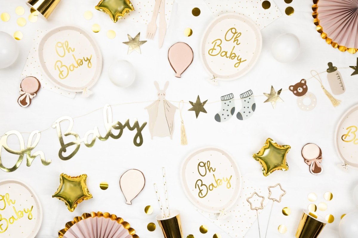 Papieren bordjes in de vorm van een ballon met het opschrift Oh schat, formaat ca. 17,5 x 22 cm.