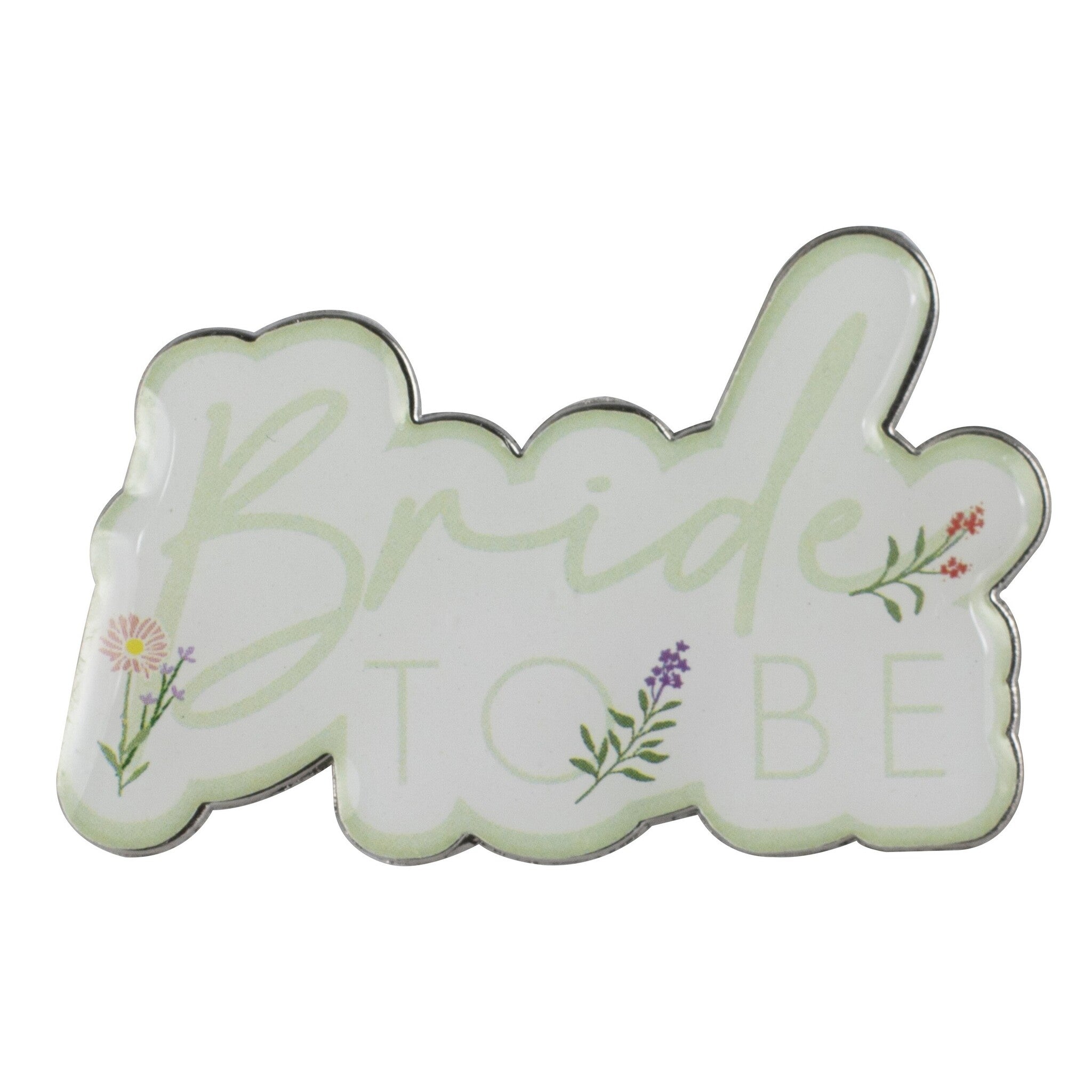 Zorg ervoor dat de bruid zich extra speciaal voelt met deze geëmailleerde 'Bride-to-Be'-badge met bloemen.