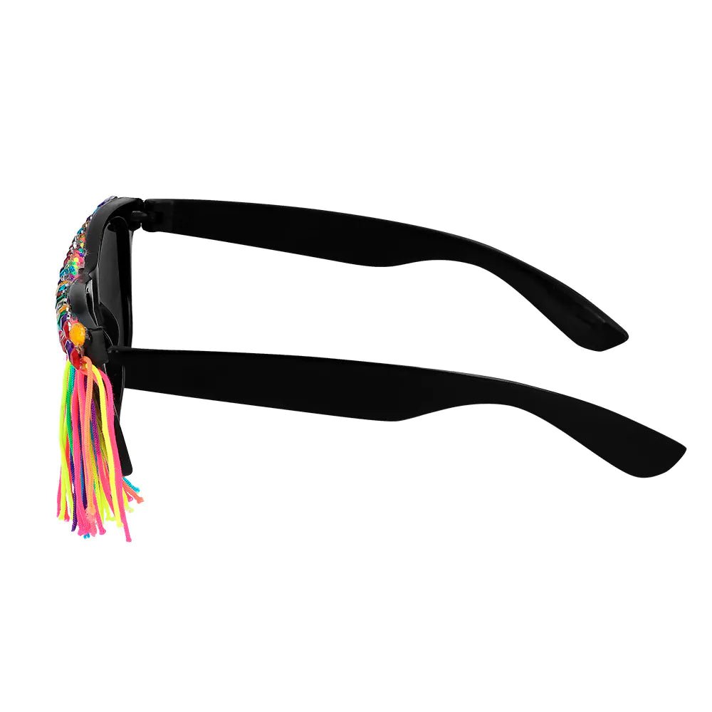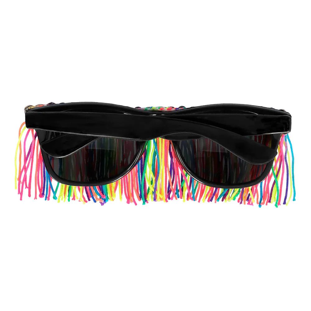 Voeg een speelse en kleurrijke twist toe aan een feestlook met deze fringy festival partybril. Het montuur is voorzien van kleurrijke franjes en glimmende steentjes voor een extravagante look die helemaal past op een festival, themafeest of Carnaval. Kortom, de perfecte accessoire voor een opvallende feestoutfit!
