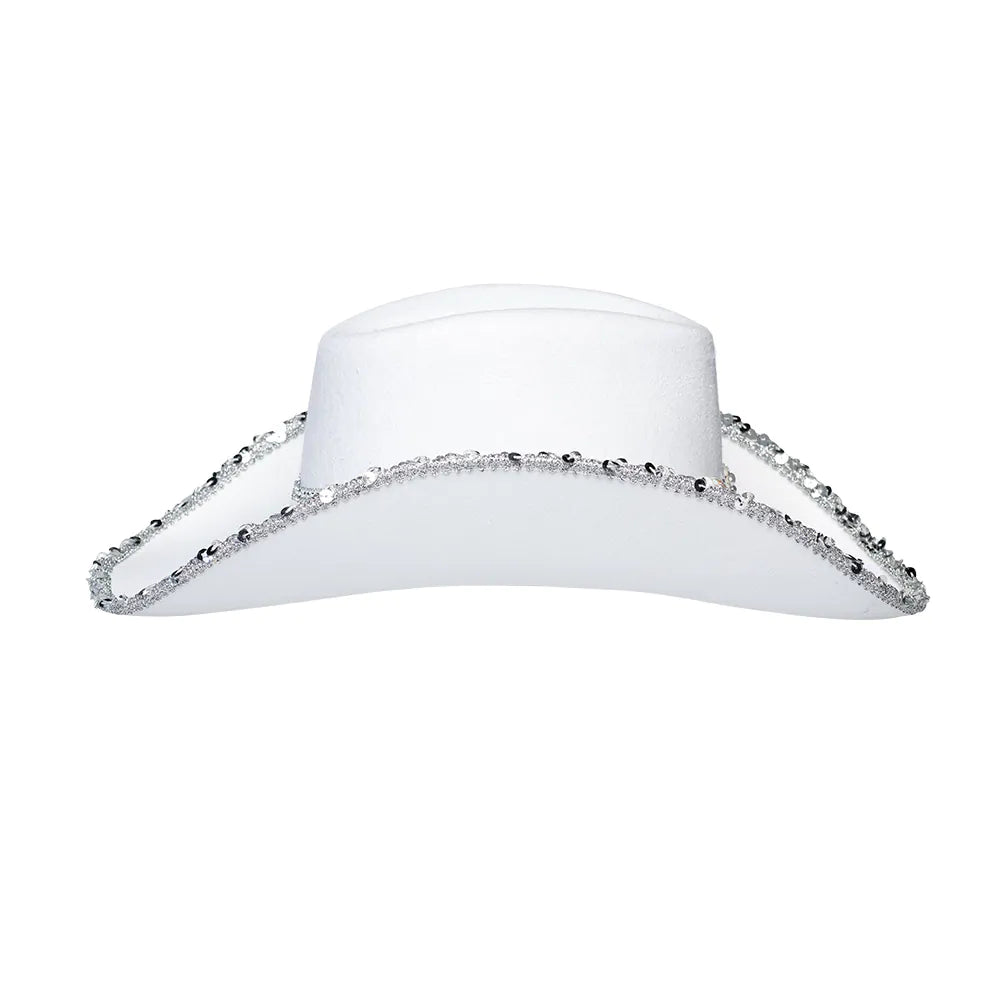 Een vrijgezellenfeest wordt pas echt een wilde avond met deze leuke witte cowboyhoed met glitters en Bride opdruk. De pailletten details en grote glimmende BRIDE opdruk geven de hoed een speelse look waardoor deze hoed de perfecte accessoire is om de bruid in spé nog even lekker in de spotlight te zetten.