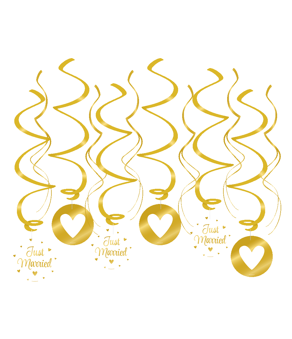 Een huwelijksfeest is altijd speciaal en wat is er nou leuker dan om dit feestje leuk aan te kleden met de swirl decorations just married! De swirls zijn gemaakt van plastic en papier en zijn ongeveer 70 centimeter lang. Ze zijn uitstekend te combineren met de just married ballonnen, vlaggetjes, folie ballonnen en party curtains, allemaal met dit leuke just married thema!