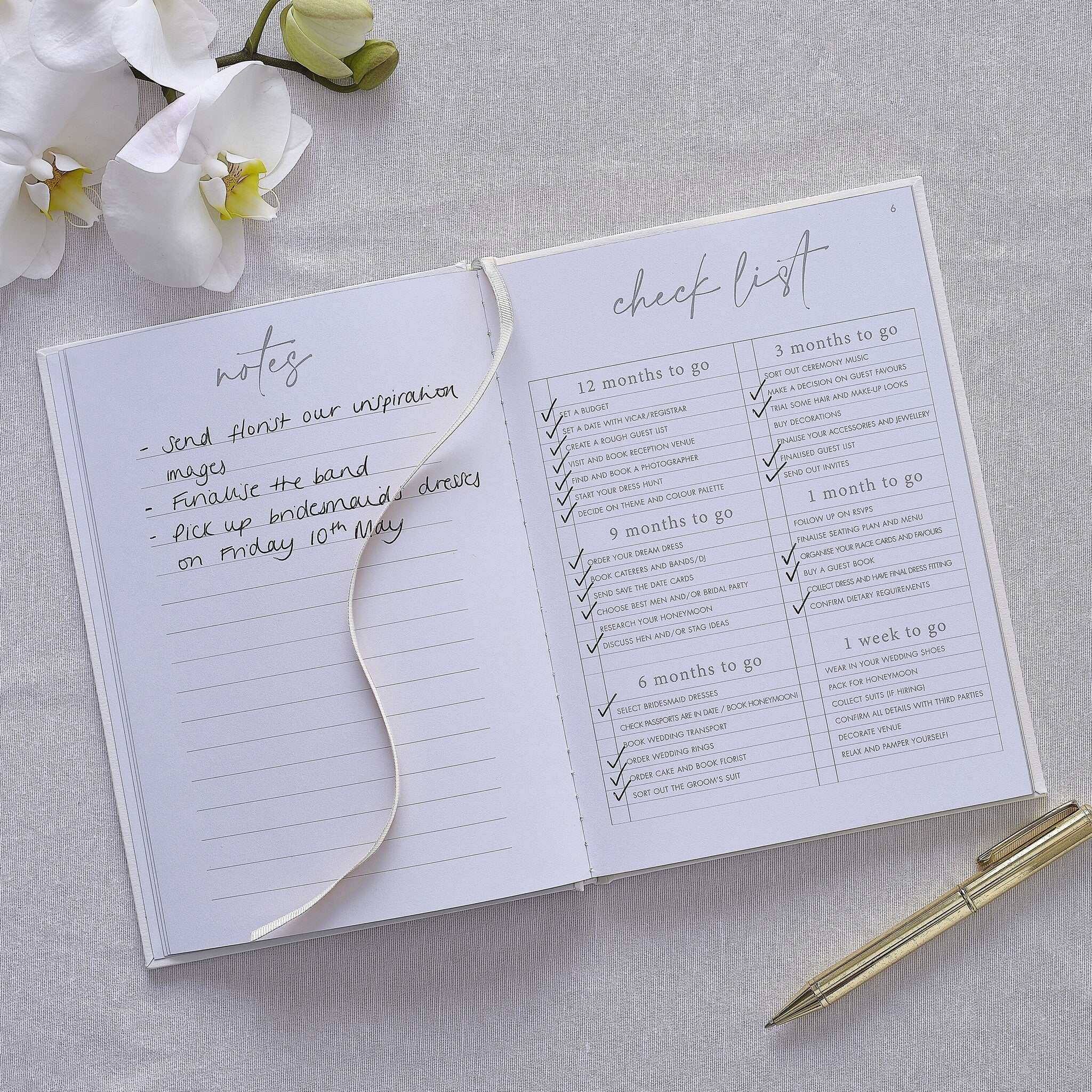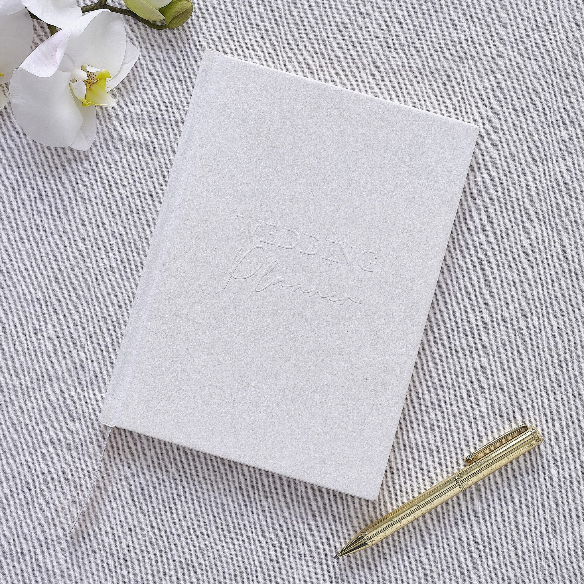 Bereid je voor op de grote dag met deze witte weddingplanner met reliëf. Deze planner bevat alles wat je nodig hebt om je bruiloft te plannen, inclusief checklists, gastenlijsten, notities en to-do-lijsten, zodat je elk detail kunt plannen. Het perfecte cadeau voor een nieuwe bruid in spe!