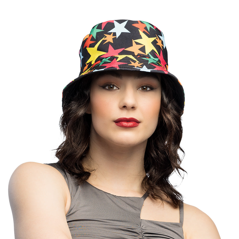 Maak je outfit compleet met de opvallende Bucket Hat Stars. Het retro vissershoedje-design in combinatie met het kleurrijke sterrenpatroon maakt elke feestoutfit een echte knaller. Perfect voor festivals, strandfeestjes, foute party’s, carnaval of een 90’s themafeest.