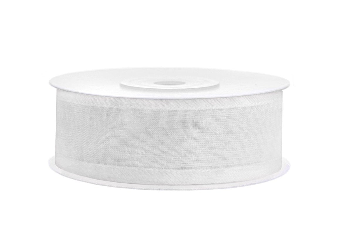 Inhoud: Chiffonlint met satijn randen, wit, breedte 25 mm, lengte 25 m. (1 st. / 25 lm)