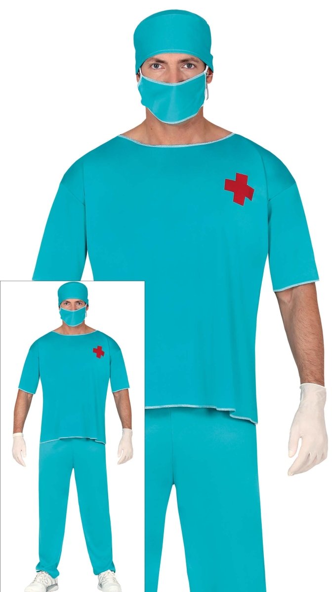 Inhoud: chirurg shirt, broek, mondkap en hoofdkap
