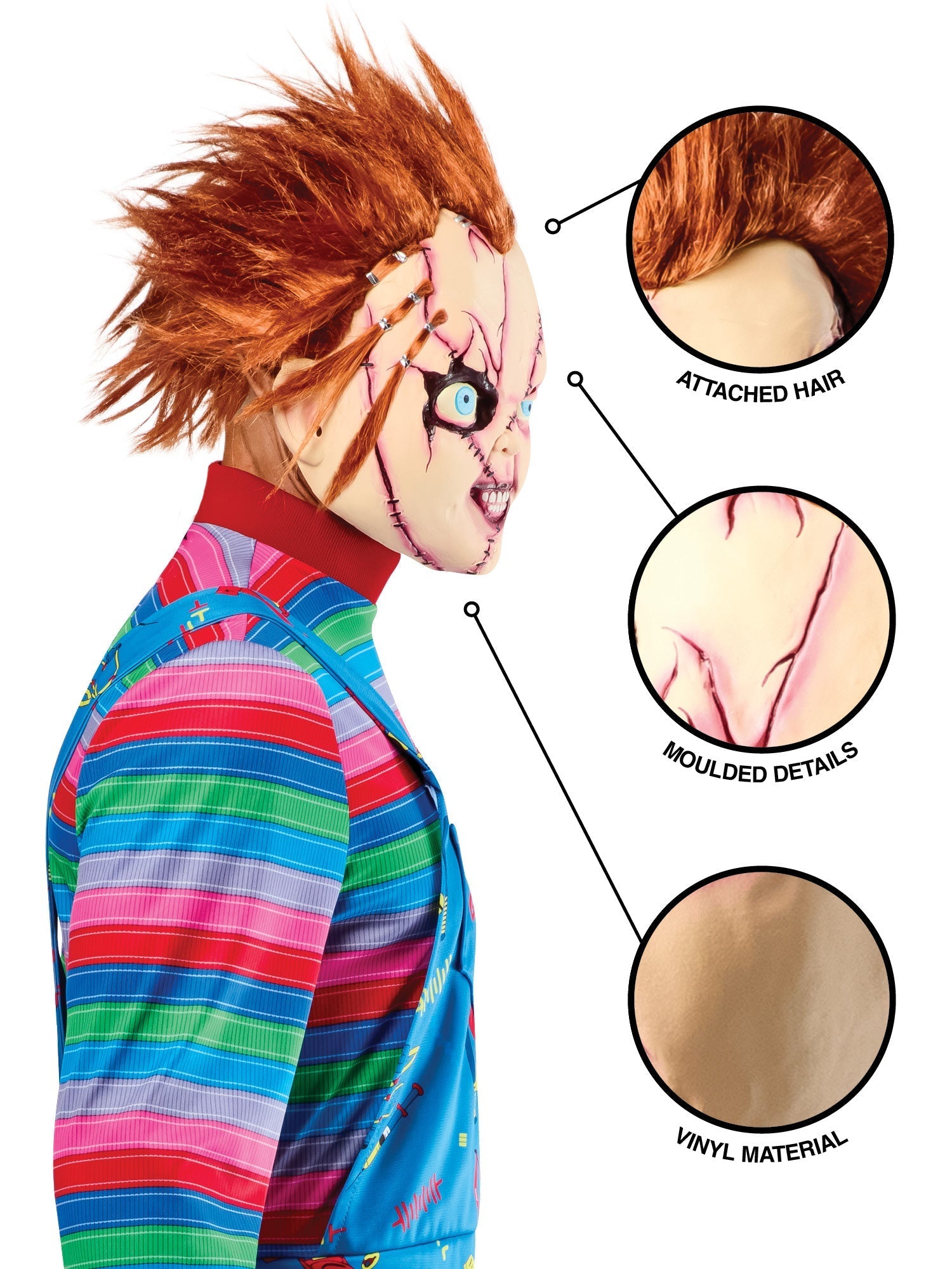 Op zoek naar een eenvoudig last-minute Halloweenkostuum of een complete cosplay-look? Dit ¾ Chucky-masker, met zijn iconische Stitched Up uiterlijk na het terugnaaien, is perfect! Combineer met onze Chucky-kostuums voor kinderen en volwassenen voor een complete horroroutfit.
