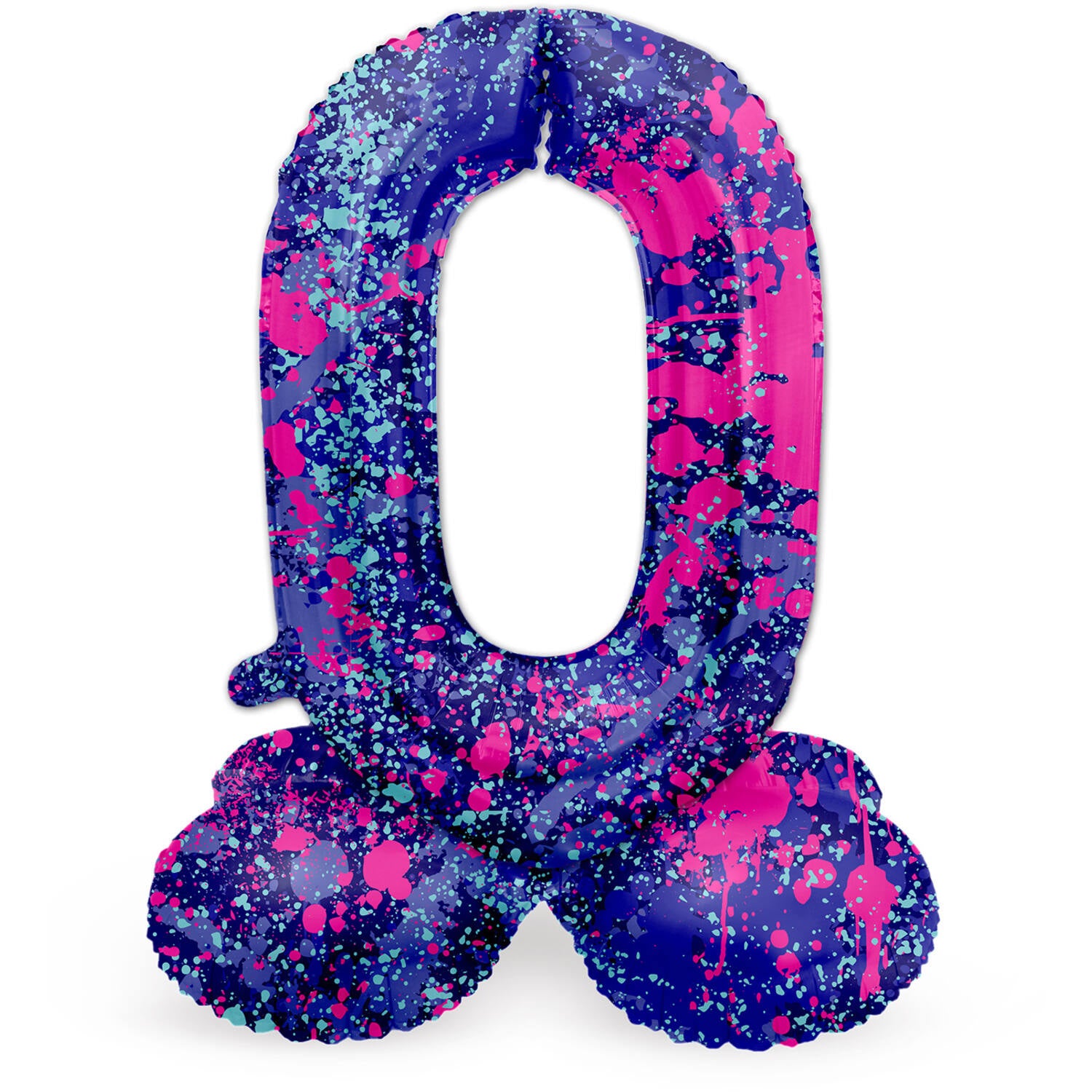 Cijfer Ballon 0 Jaar Spetters Met Standaard Leeg 72cm