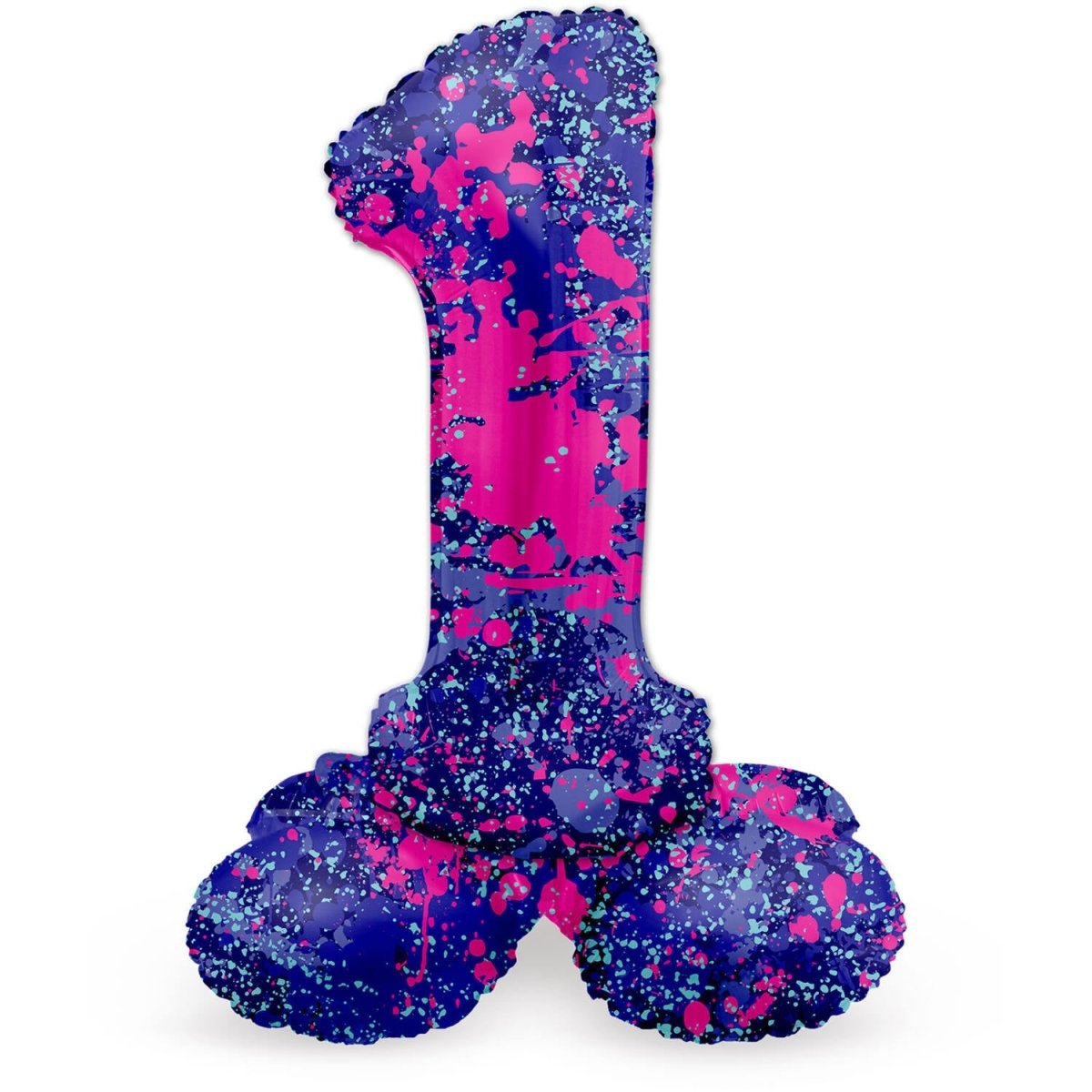 Cijfer Ballon 1 Jaar Spetters Met Standaard Leeg 72cm
