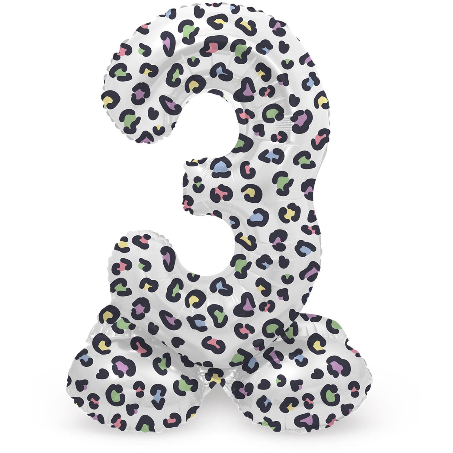 Cijfer Ballon 3 Jaar Panter Met Standaard Leeg 41cm