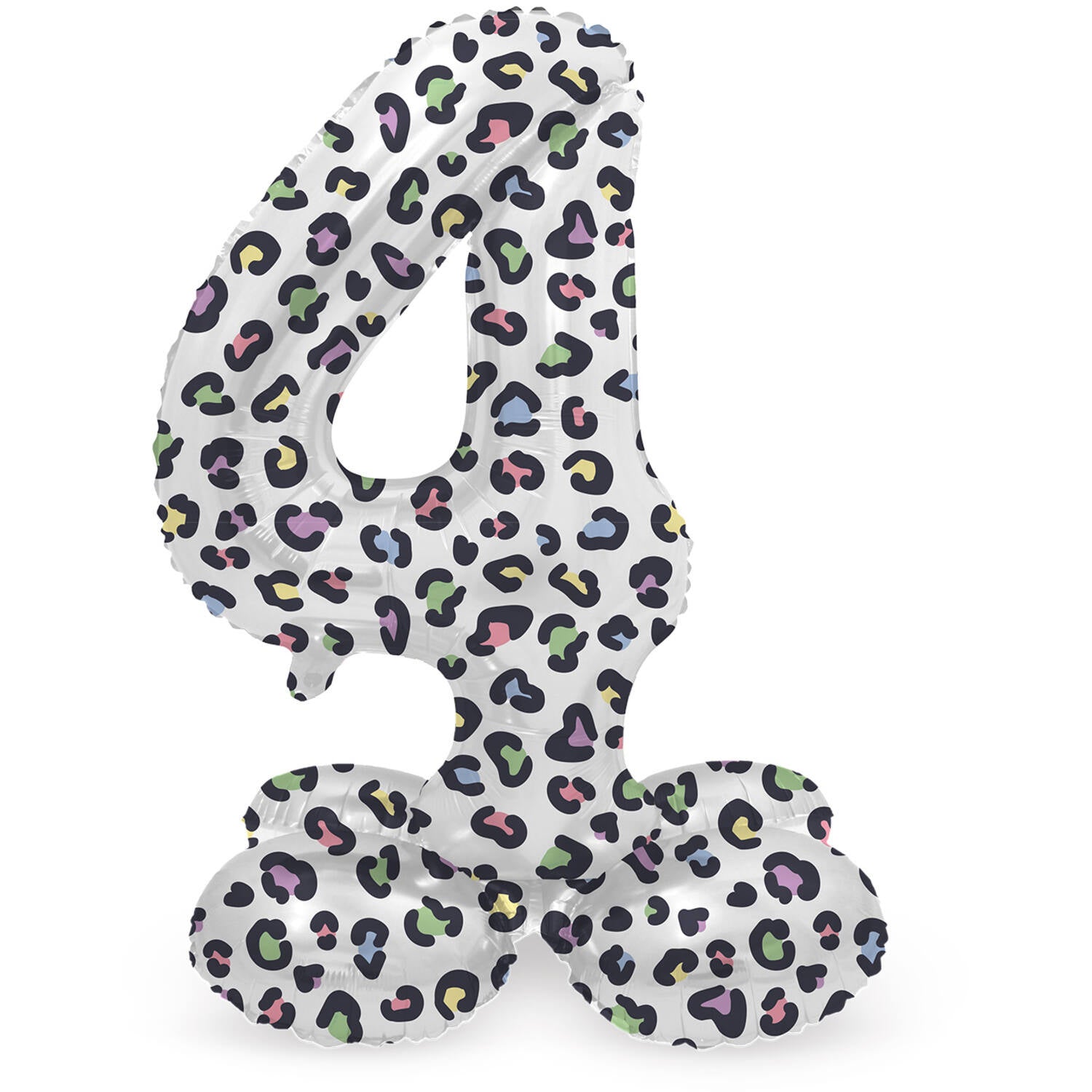 Cijfer Ballon 4 Jaar Panter Met Standaard Leeg 41cm