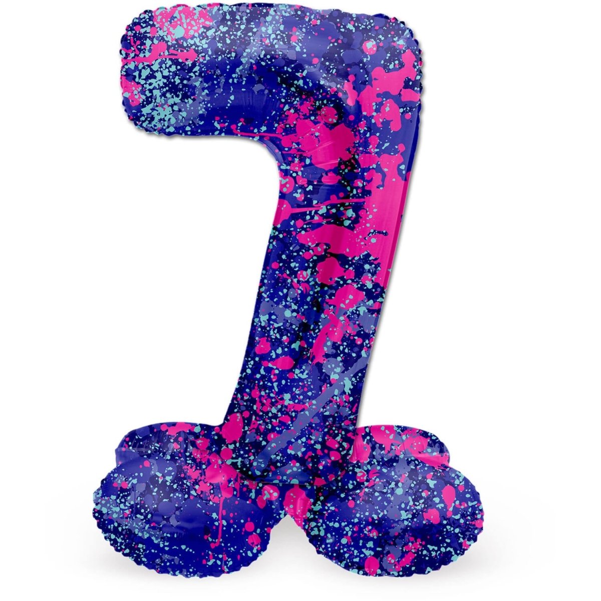 Cijfer Ballon 7 Jaar Spetters Met Standaard Leeg 72cm