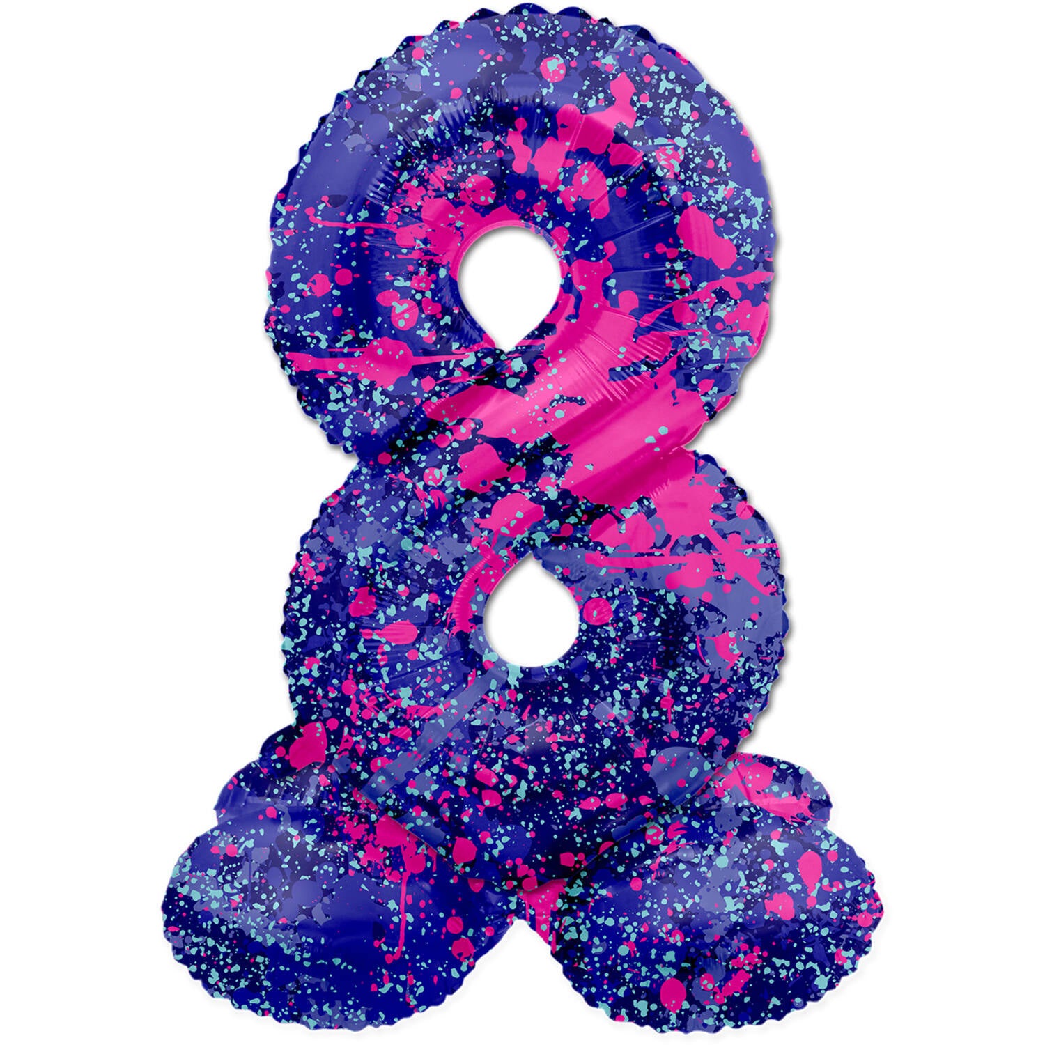 Cijfer Ballon 8 Jaar Spetters Met Standaard Leeg 72cm
