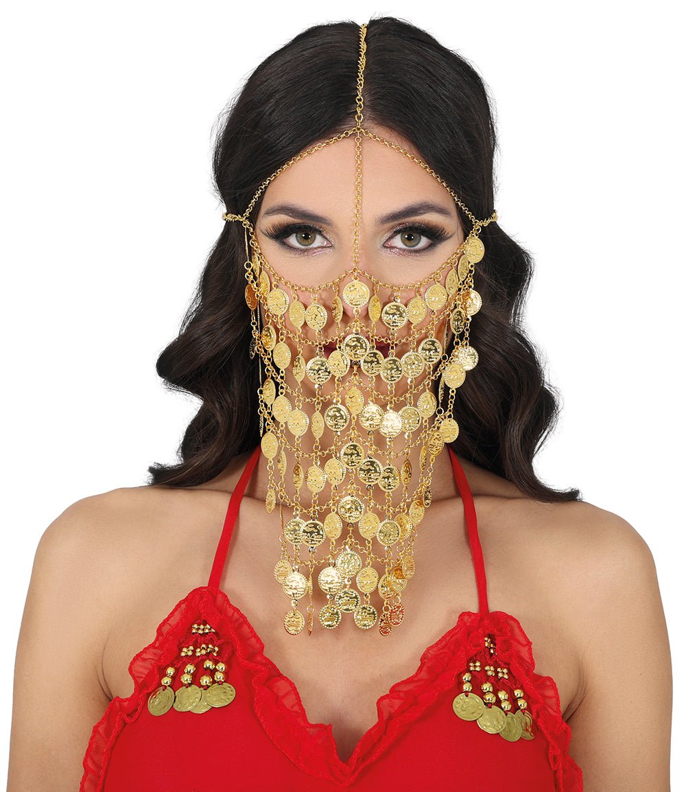 Maak een mysterieuze en glamoureuze indruk met dit gouden metalen masker met muntjes. De speelse munten bewegen zachtjes mee en zorgen voor een elegant geluidseffect, waardoor het masker perfect is voor themafeesten, dansavonden of verkleedpartijen met een vleugje luxe.