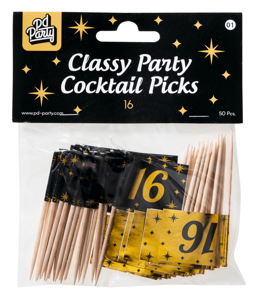 Cocktailprikkers 16 Jaar 6,5cm 50st