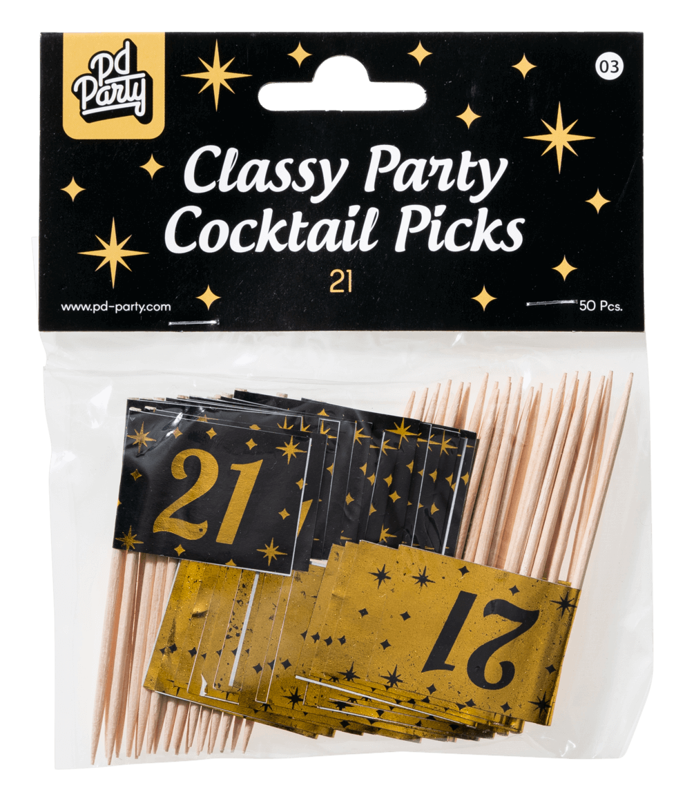 Cocktailprikkers 21 Jaar 6,5cm 50st
