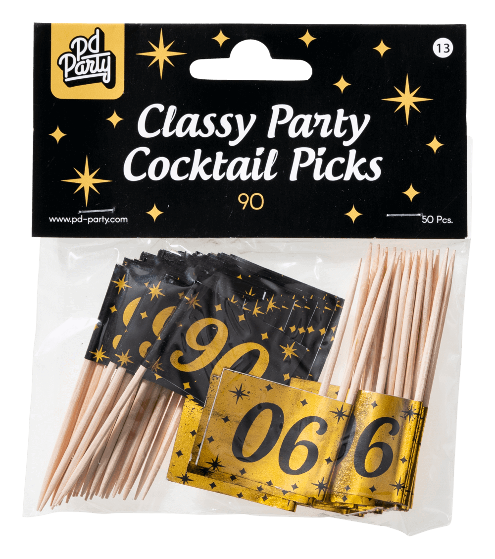Cocktailprikkers 90 Jaar 6,5cm 50st