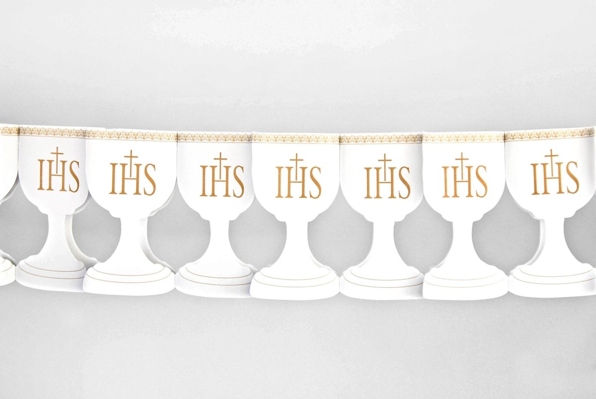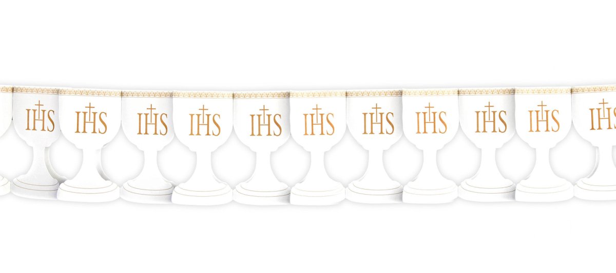 Inhoud: Papier guirlande IHS kelk, wit, afmetingen 17 cm x 3 meter.