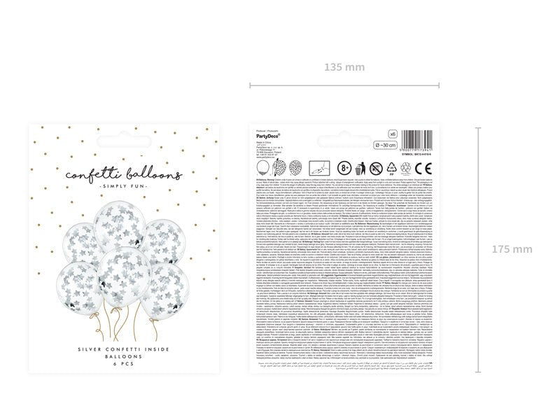 Confetti Ballonnen Zilveren Sterren 30cm 6st