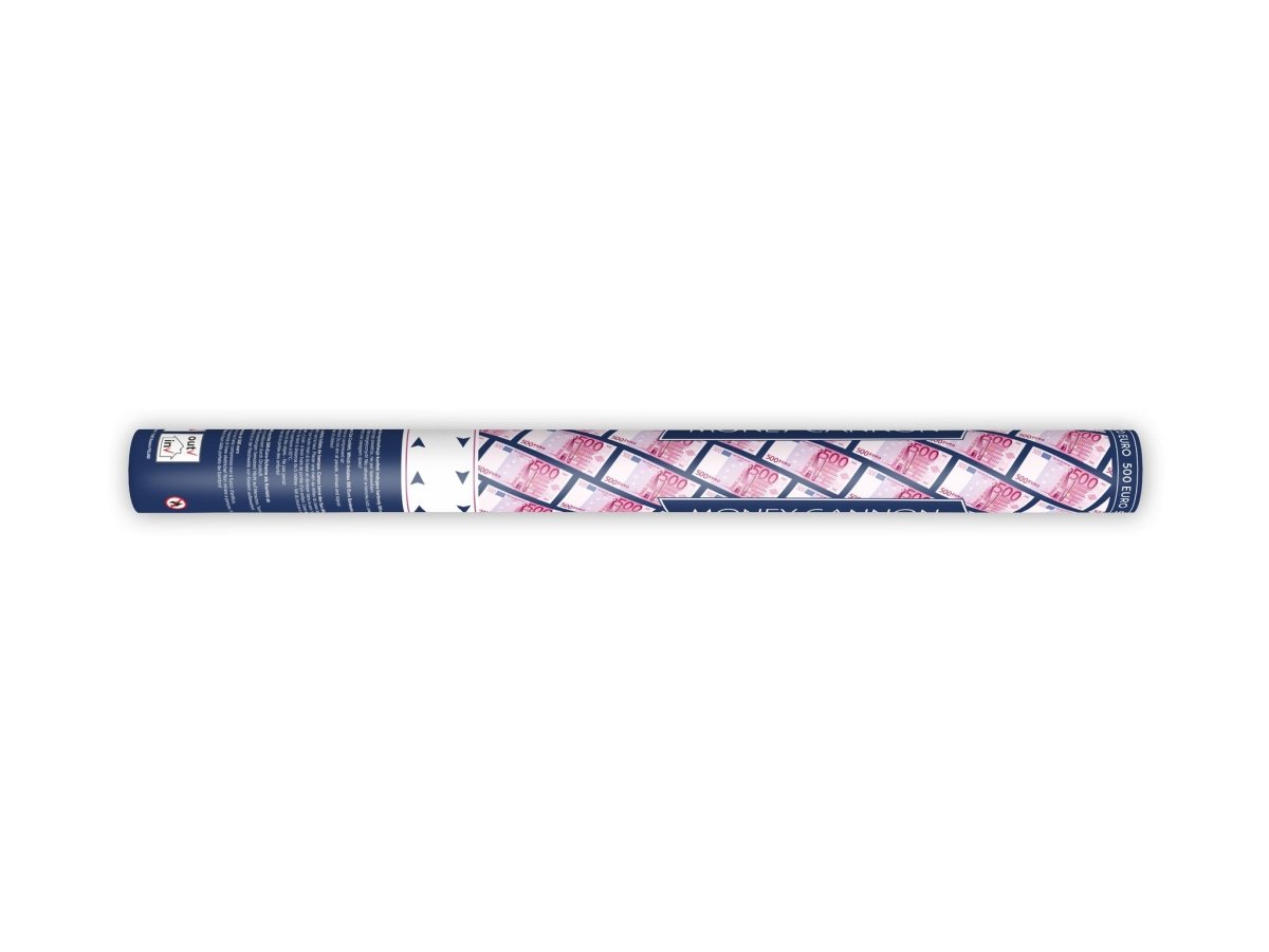 Inhoud: Confetti kanon schieten uit 500 eurobiljetten, lengte 60 centimeter.