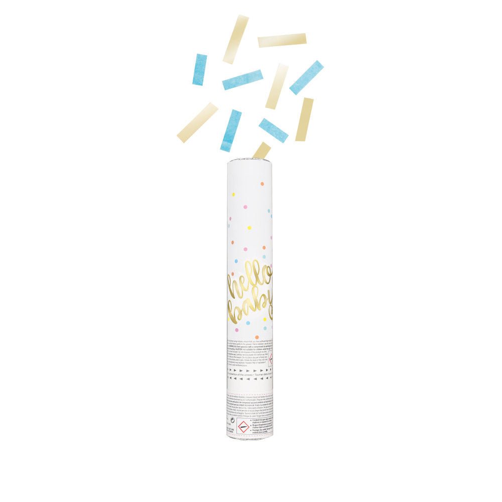 Verpakkingsinhoud: Confetti Kanon Hello Baby Blauw 30cm