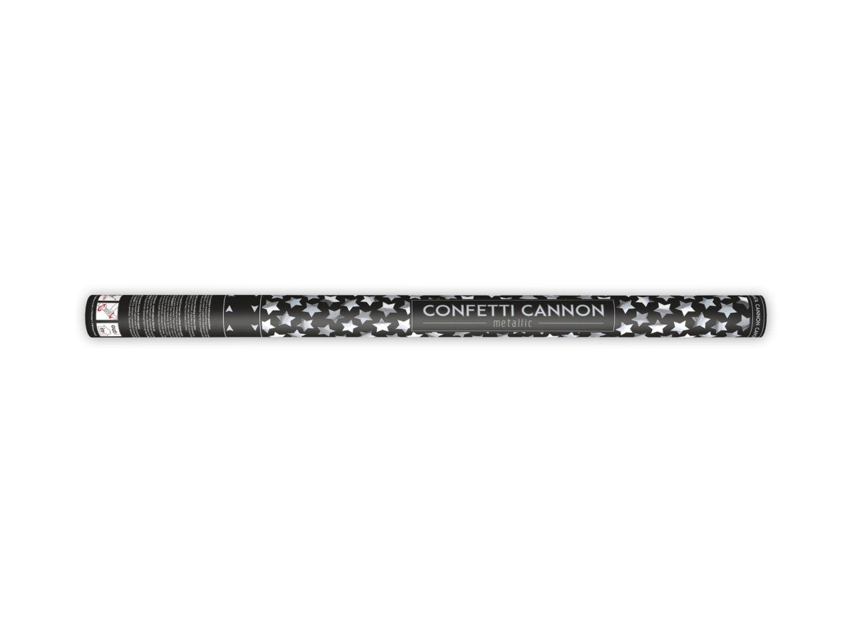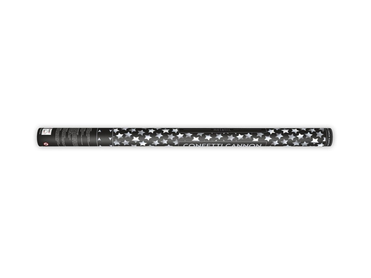 Inhoud: Confetti kanon schieten uit metallic sterren, zilver, lengte 80 centimeter.