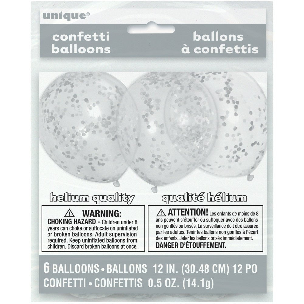 Verpakkingsinhoud: Ballonnen Confetti Zilver 30cm 6st