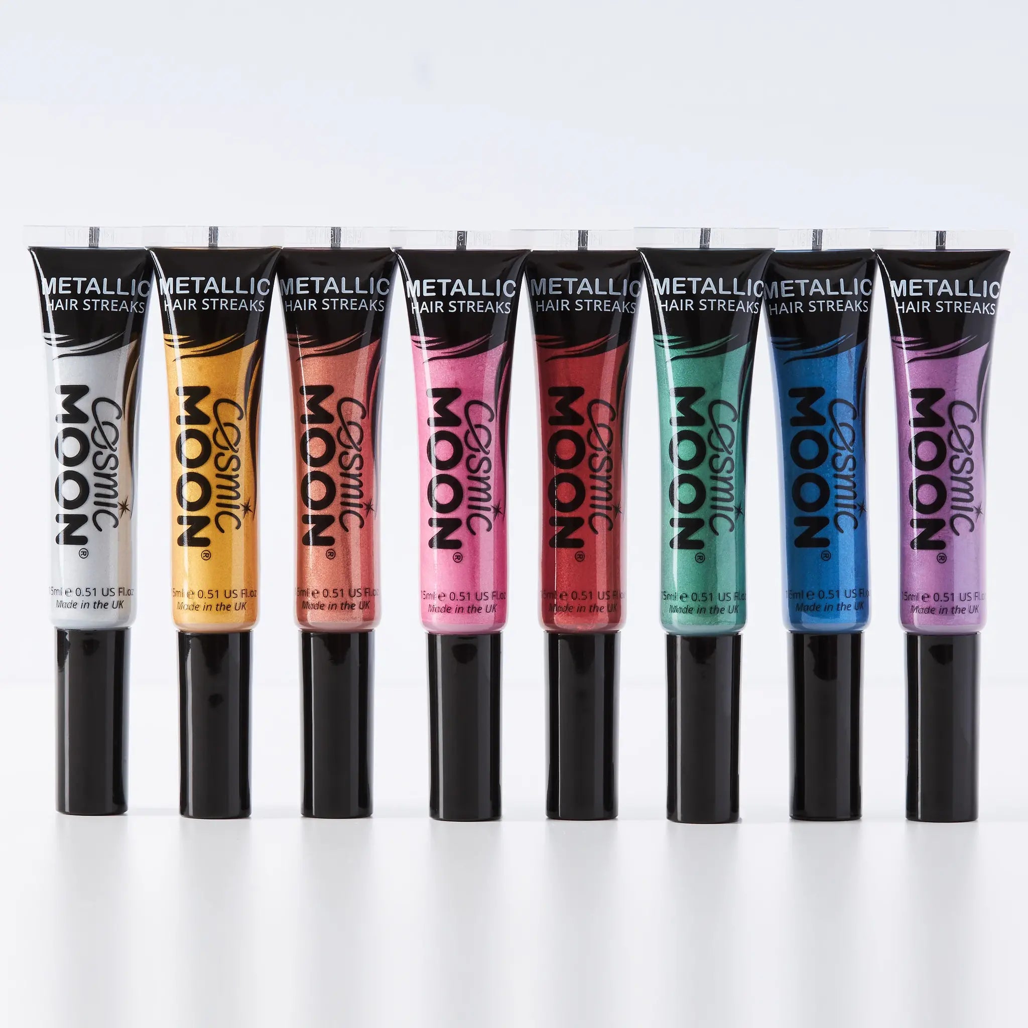 Verander je haarkleur onmiddellijk met een van deze 8 metallic kleuren van topkwaliteit. Gemakkelijk aan te brengen met een borstel en gemakkelijk te verwijderen met shampoo.