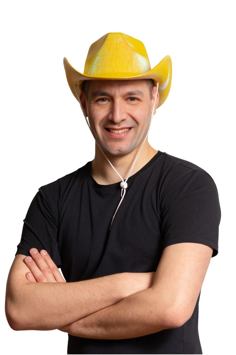 De Cowboy Hoed Shiny in goud is een opvallend en feestelijk accessoire dat perfect past bij cowboy-, western- en party-outfits. De glanzende afwerking zorgt voor een luxe uitstraling en maakt deze hoed ideaal voor carnaval, themafeesten en andere verkleedgelegenheden.