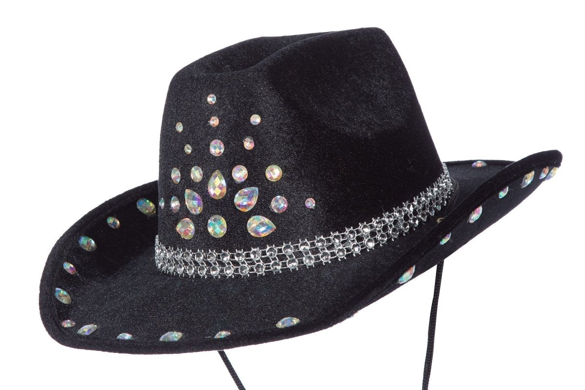 Cowboy Hoed Zwart Dames Strass Steentjes