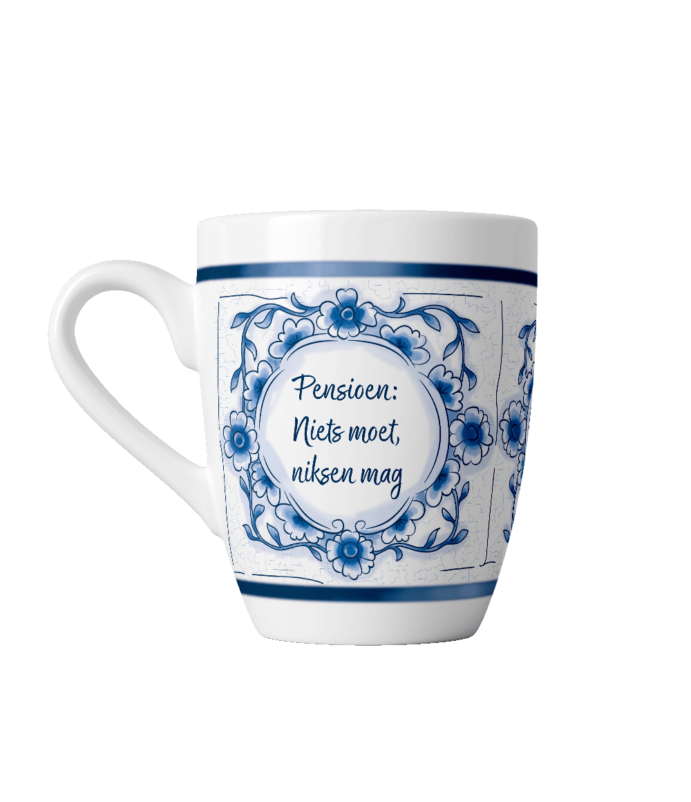 Breng een vleugje Hollandse charme in huis met deze prachtige Delfts Blauwe mok van Paper Dreams. Het klassieke ontwerp gecombineerd met een moderne, humoristische twist maakt deze mok tot een perfect cadeau voor een feestelijke mijlpaal. Het herkenbare Delfts blauwe patroon is voorzien van een leuke of hartverwarmende tekst zoals “Pensioen”. De duurzame print blijft langdurig mooi, zelfs bij dagelijks gebruik. Het stevige keramiek zorgt daarnaast voor een prettige grip.