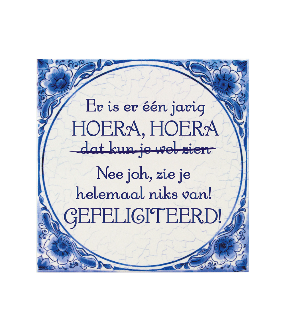 Delftsblauw Tegel Er Is Er Één Jarig 15cm