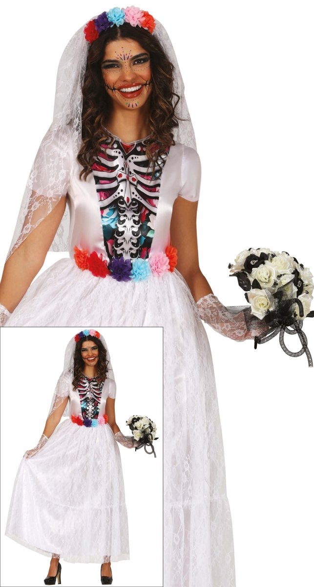 Dia De Los Muertos Jurk Wit Dames Bruid