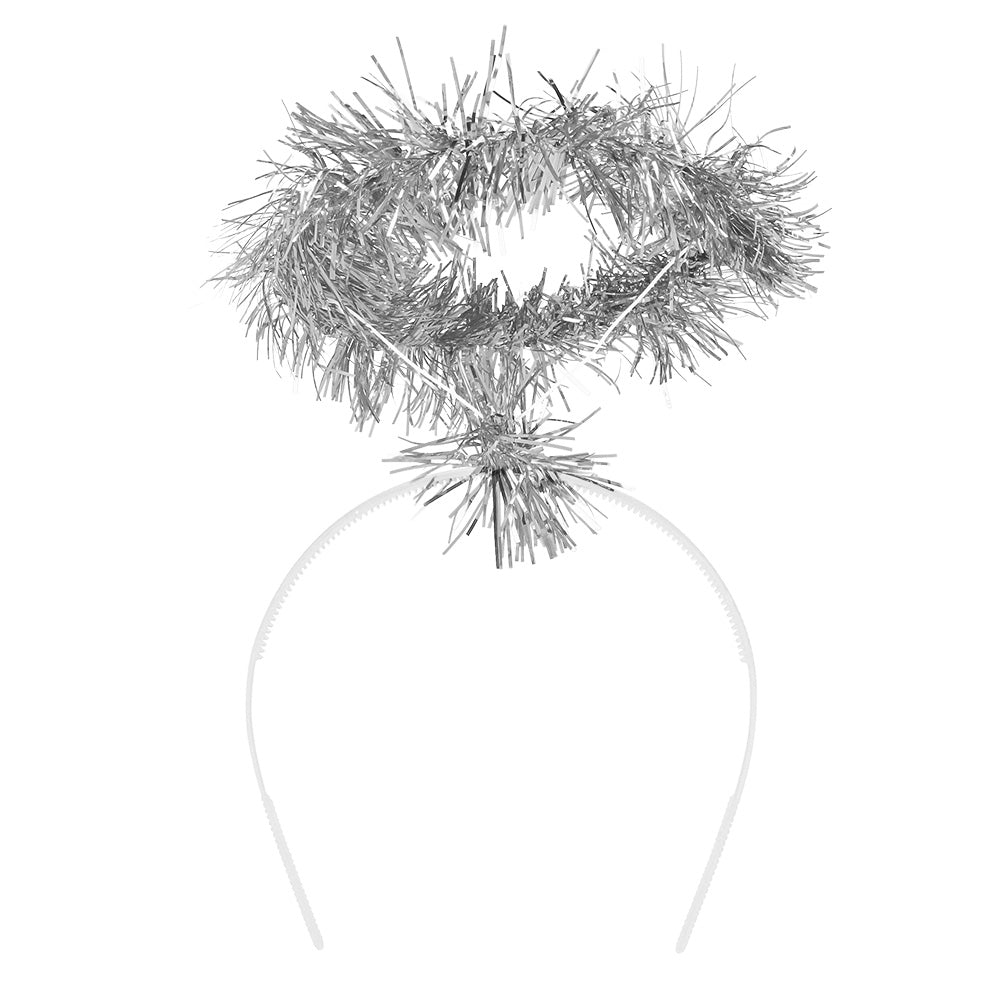 Stralend en hemels – maak je engelenlook compleet met deze prachtige zilveren halo diadeem. Perfect voor kerstvieringen, carnaval, themafeesten of cosplay evenementen. De halo heeft een diameter van 17 cm en is versierd met glinsterende zilveren tinsels voor een sprankelende en feestelijke uitstraling.