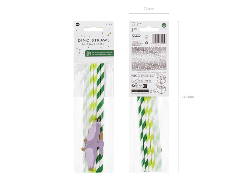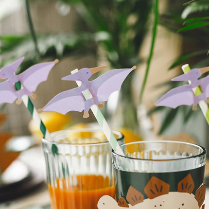 Rietjes met rietoppers Pterodactyl van papier, kleurenmix, rietje ca. 19,5 cm groot, rietoppers ca. 9,5 x 4 cm groot. (1 pkt / 6 stuks)