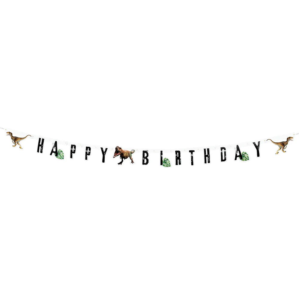 Betreed het Jura tijdperk en vier een Dino verjaardagsfeest met deze spectaculaire Happy Birthday letterslinger in T-Rex thema! De slinger is de perfecte manier om een avontuurlijke sfeer te creëren.