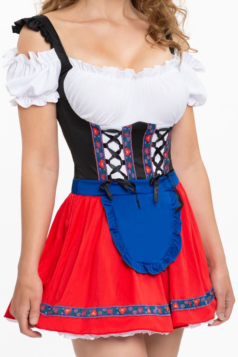 Dirndl Jurk Oktoberfest Rood Blauw Schort