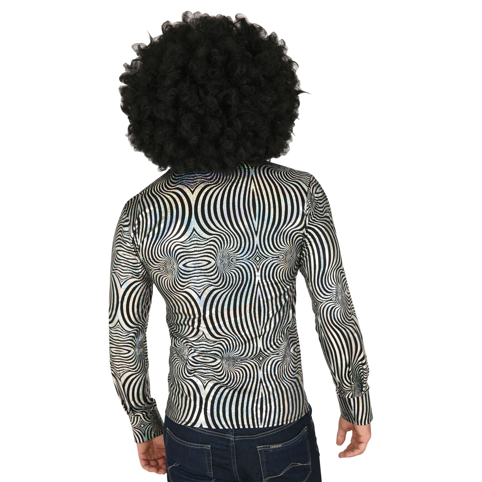 Disco 70S Blouse Zwart Zilver Heren