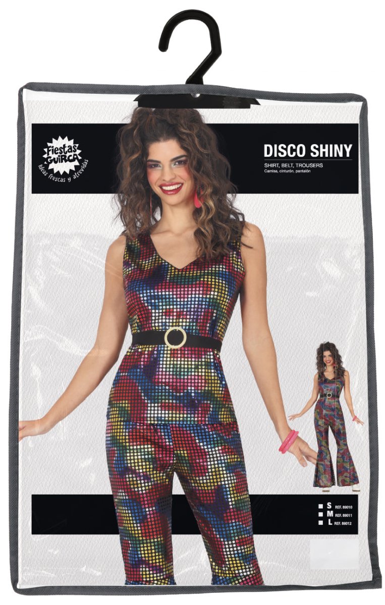 Ga helemaal terug naar de jaren zeventig met dit opvallende disco kostuum voor dames. De glimmende stof en flatterende pasvorm zorgen voor de perfecte look op elk feest, thema-evenement of carnaval. Het kostuum is comfortabel om te dragen en gemaakt van soepel polyester, zodat je vrij kunt bewegen op de dansvloer.