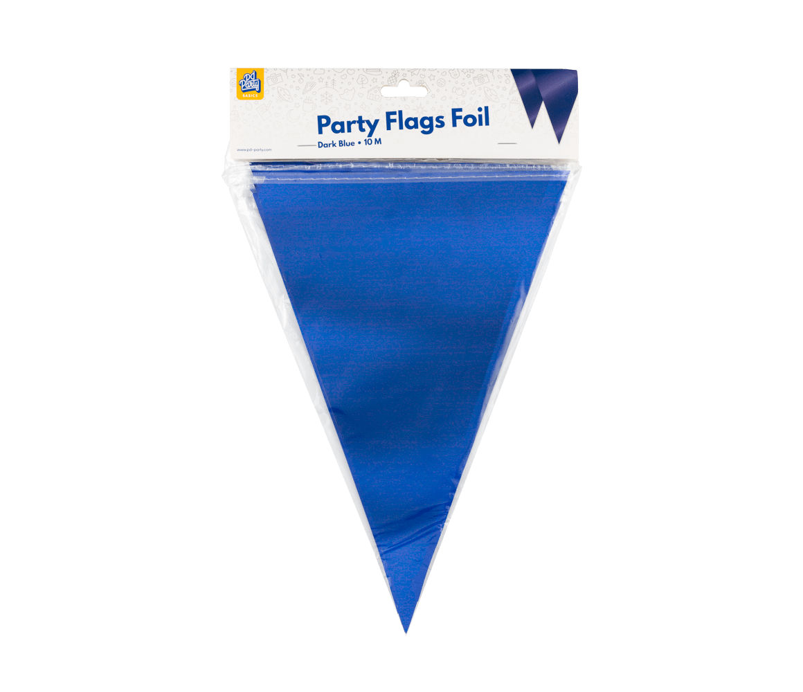 Met de party flags foil - dark blue uit de Basic collectie van Paper Dreams haal je een kwalitatieve donkerblauwe vlaggenlijn in huis voor een scherpe prijs. De vlaggenlijn is 10 meter.