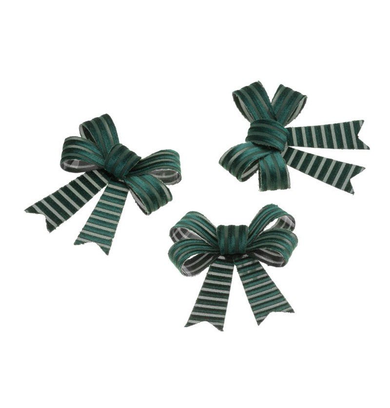 Voeg een stijlvolle en warme touch toe aan je decoraties met deze set van 3 groene corduroy fluweelstrikjes. Dankzij de combinatie van de fluwelen structuur en de diepe groene kleur zijn deze strikjes perfect voor een chique en feestelijke uitstraling.