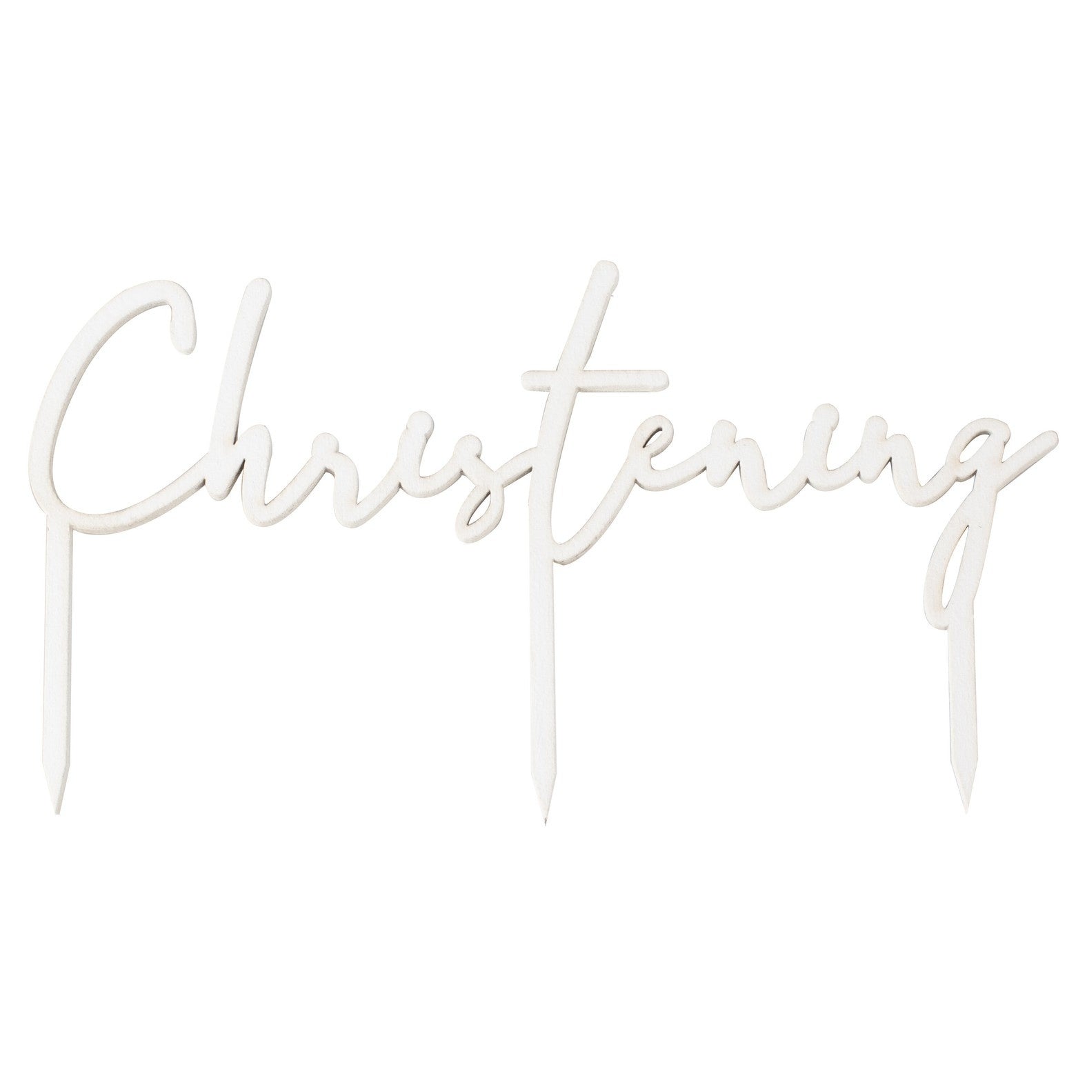 Geef je dooptaart de perfecte finishing touch met deze houten taarttopper.